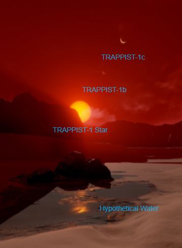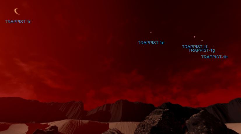 One major difference is what the night sky would look like. Due to their proximity to each other, the planets would feature prominently in the sky, similar to how the moons of the gas giants interact and are visible from one another. In fact, Jupiter is quite a good analog for the system, as (although much more massive), TRAPPIST-1a (the star) is similar in size to it, and TRAPPIST 1’s innermost planet orbits at roughly the same distance as Jupiter’s outermost (large) moon. This planet, TRAPPIST-1b, and its neighbour, TRAPPIST-1c, are both incredibly hot, and this probably caused a runaway greenhouse effect, like Venus, and so have thick atmospheres. However, data collected from Hubble, suggests that none of the planets have a hydrogen atmosphere, which would result in a large greenhouse effect and probably end up in the planet being more of a gas giant or mini neptune than a terrestrial earth like body.