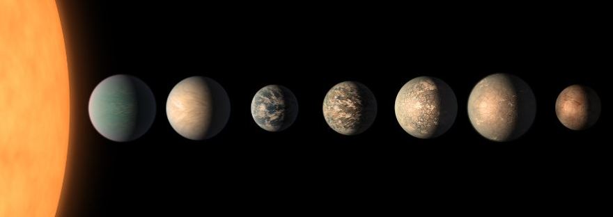 Discovered in 1999, TRAPPIST-1 (then called the very catchy ‘2MASS J23062928-0502285’ which I definitely did not just cut and paste from wikipedia…) is an ultra cool dwarf star ~40 light years from Earth. It’s small size means that it is only half as hot as our sun, which results in a solar system that is very different to our own! All of the planets we have discovered so far orbit very close to the star, which is both a benefit and a curse: the close orbits mean that they are most likely to be tidally locked (the same situation as our moon) so the same side of the planet is in perpetual day time, and the other in endless darkness. Unless the planet has a substantial atmosphere with good circulation, its surface would probably be inhospitable. (If you are interested, I could do a blog solely about tidally locked planets, as they are fascinating!). On the other hand, their proximity to their star means that 3 are considered to be in the habitable zone, as the low temperature means that this region is also incredibly close to the star! If the planets were laid out in a similar fashion to our solar system’s, not only would the star appear very small and dim, but none of the planets would be in the habitable zone, where liquid water can be found.